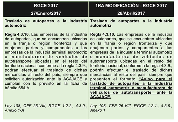 Recordemos que el día 28 de abril de 2017, fue publicada la “Primera Resolución de Modificaciones a las Reglas Generales de Comercio Exterior para 2017 y sus anexos 1, 1-A, 10, 21, 22 y 26”, para entrar en vigor el día 2 de mayo de 2017.