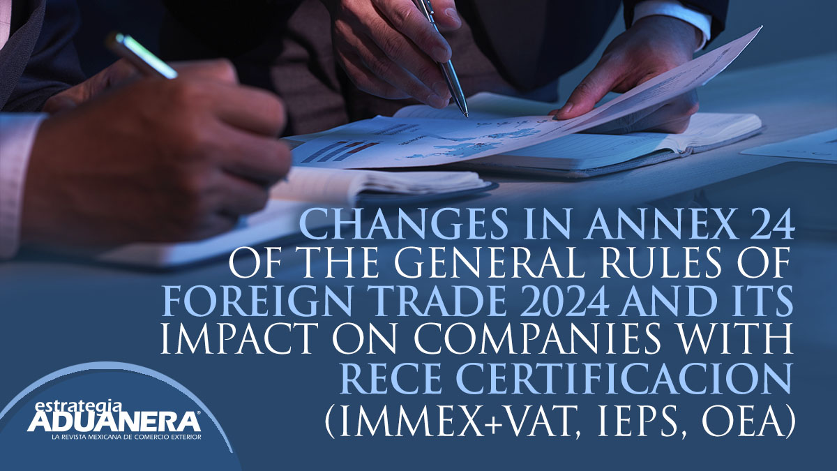 Annex 24 of the General Rules of Foreign Trade (RGCE) establishes the guidelines for the automated inventory control system of temporarily imported goods. As of the first anticipated modification of Annex 24 for 2024, published on the SAT portal today, important changes are introduced for companies registered in the Registry in the Business Certification Scheme (RECE). This article examines these changes, the activities and documents that these companies must submit, and the legal relevance of this early version.