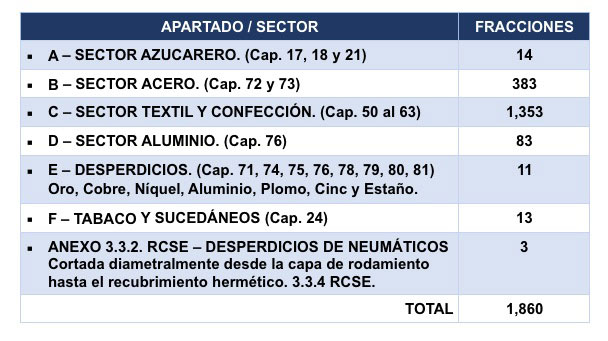 1. En la práctica aduanera las fracciones arancelarias de los sectores sensibles se encuentran sobre reguladas en materia de medidas no arancelarias, tanto para el régimen definitivo y como en el temporal. Por ejemplo: si una empresa IMMEX de los sectores acero, textil y confección optara por importar en forma definitiva insumos de estos sectores para sus procesos productivos, se enfrentaría al cumplimiento de precios estimados, padrones sectoriales y avisos o permisos automáticos; lo cual hasta cierto punto, es menos complejo tramitar la ampliación IMMEX para la importación temporal aun pagando el Impuesto al Valor Agregado.