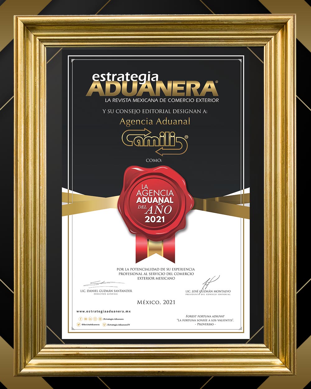 Año con año, el departamento de análisis de opinión de la revista Estrategia Aduanera realiza un minucioso análisis para determinar qué agencia logra acreditar los requisitos necesarios para convertirse en el principal socio y aliado estratégico de sus clientes.  Así, este año se reconoció la excelencia, trabajo arduo y dedicación de Grupo CAMILI.