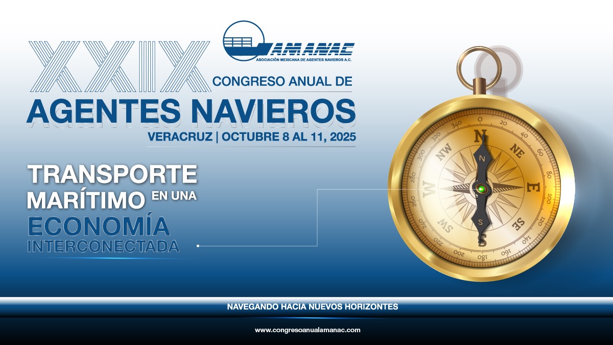 Del 8 al 11 de octubre de 2025, la Asociación Mexicana de Agentes Navieros (AMANAC), celebrará su XXIX Congreso Anual de Agentes Navieros, bajo el lema “Transporte marítimo en una economía interconectada”.