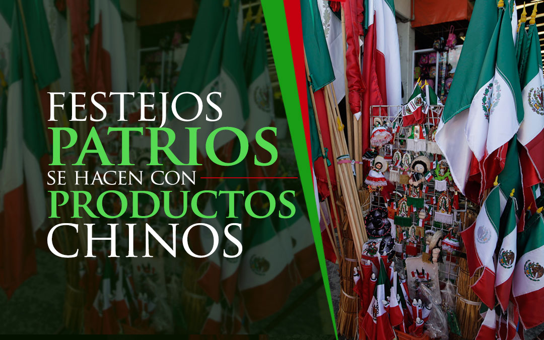 Sarapes, sombreros, banderas, matracas, trompetas y hasta pirotecnia, es importada desde China, con la finalidad de festejar el Grito de la Independencia Mexicana, de acuerdo con diversos especialistas, debido a que el costo de producción y comercialización es más económico.