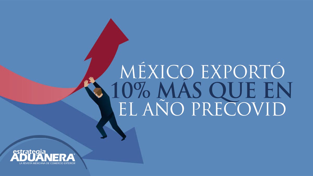 Las exportaciones han sido un factor que ha ayudado a impulsar la economía mexicana que ha visto severamente afectada por el COVID-19. En 2021 las estimaciones apuntan a que cerró con 470 mil millones de dólares (mdd), lo cual representa un aumento del 10% en comparación del 2019, antes de la pandemia, en ese año se alcanzaron 460 mil millones de dólares.