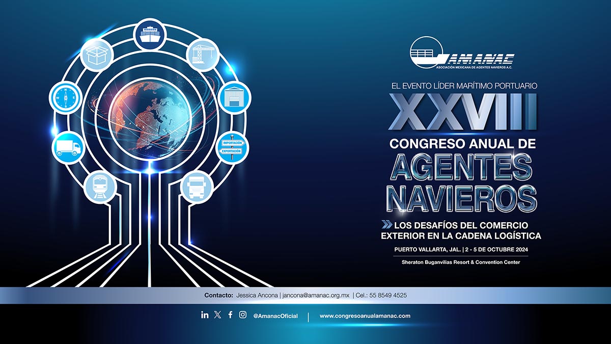 En el marco de su XXVIII edición, el Congreso Anual de Agentes Navieros, reconocido como el evento líder del sector marítimo-portuario en México, se celebrará en Puerto Vallarta del 02 al 05 de octubre de 2024.