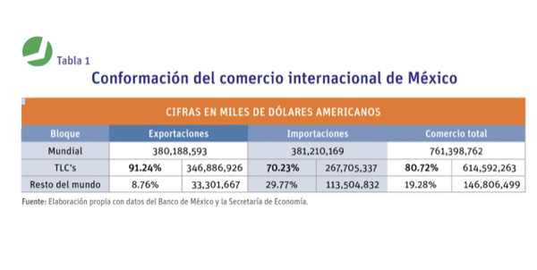 Para poder observar el impacto que los TLC’s tienen en la economía mexicana, basta con decir que del total del comercio exterior de México durante 2013, el intercambio comercial realizado con los países de la red representó 80.72% del total, presentándose además un importante dinamismo a la actividad exportadora, pues de las exportaciones totales 91.24% fueron provenientes de la misma red, de la misma forma se han impulsado las importaciones, ya que del total, 70.23% provienen de esta red (Ver Tabla 1).